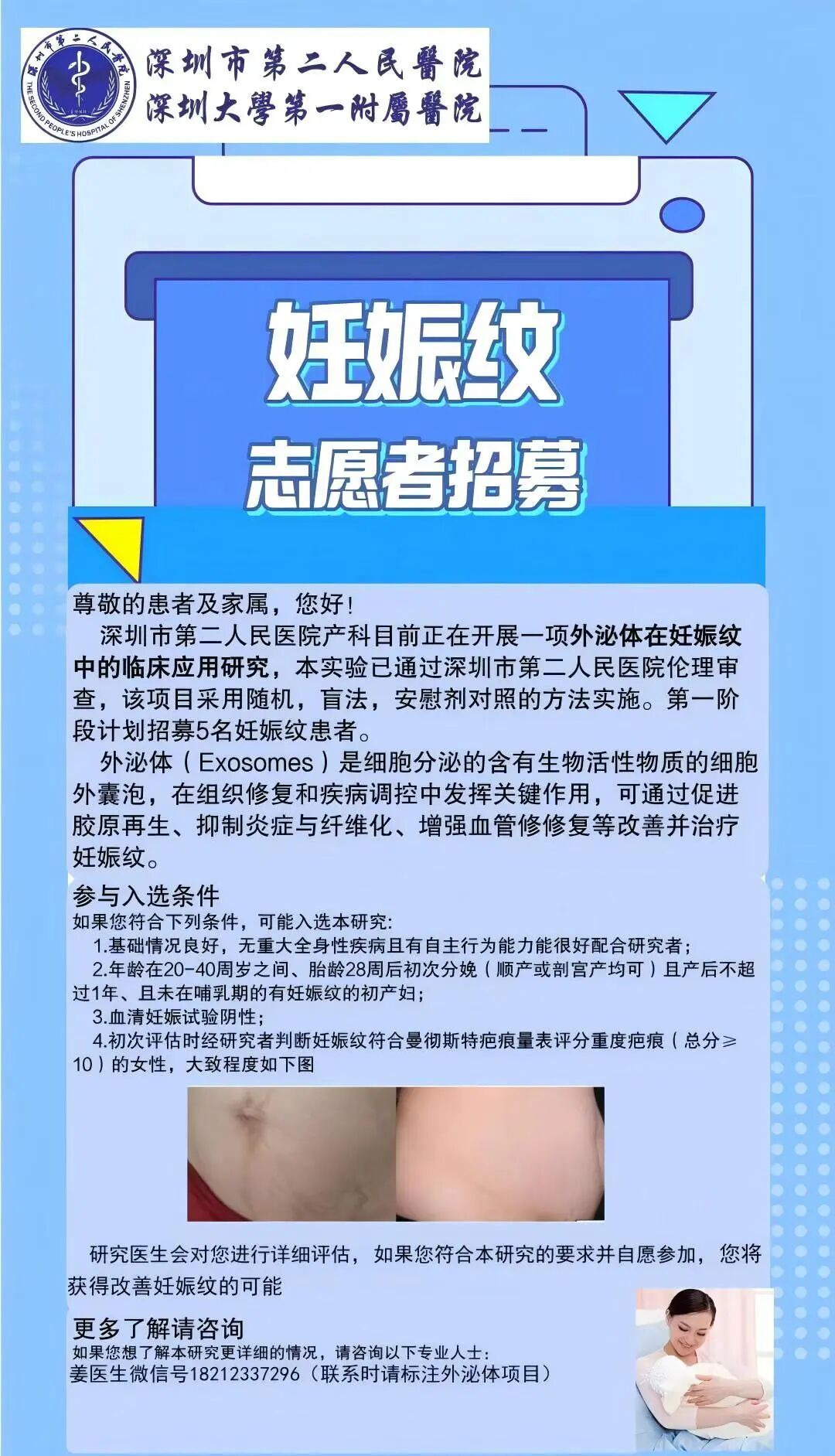 【患者招募】深圳市第二人民医院启动外泌体在妊娠纹中的临床应用研究